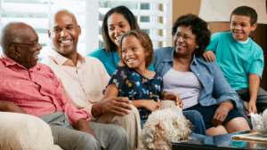 La comunicación fluye naturalmente cuando los miembros de la familia planean estrategias, bromean o interactúan. Juegos como charadas invitan a todos a participar.